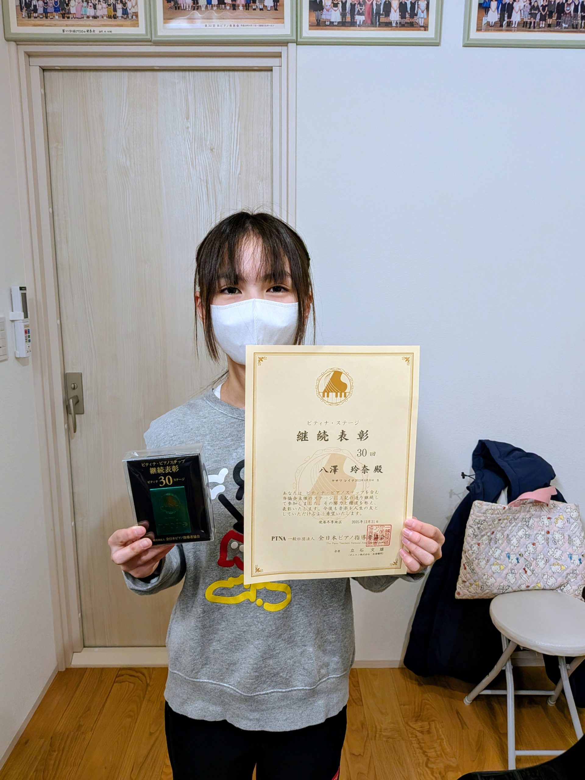 30回継続表彰の盾を手に